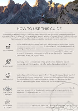 My 14 day Ring Road itinerary is a complete, ready to use guide for your Iceland adventure. It includes daily routes, must-see stops, scenic hikes and recommended campsites - all carefully planned to help you experience the best of Iceland with ease. You’ll explore waterfalls, glaciers, volcanic landscapes, black-sand beaches and geothermal hot springs, with practical details, local tips and clear directions for every stop. Designed for campervan travel, this itinerary takes the stress out of planning so you can focus on the adventure and exploring Iceland’s wild beauty, one incredible day at a time. To make your journey even smoother, the itinerary package also includes my personal hiking GPX routes and my Google Map pins for key locations, helping you navigate effortlessly and make the most of every moment on the road.